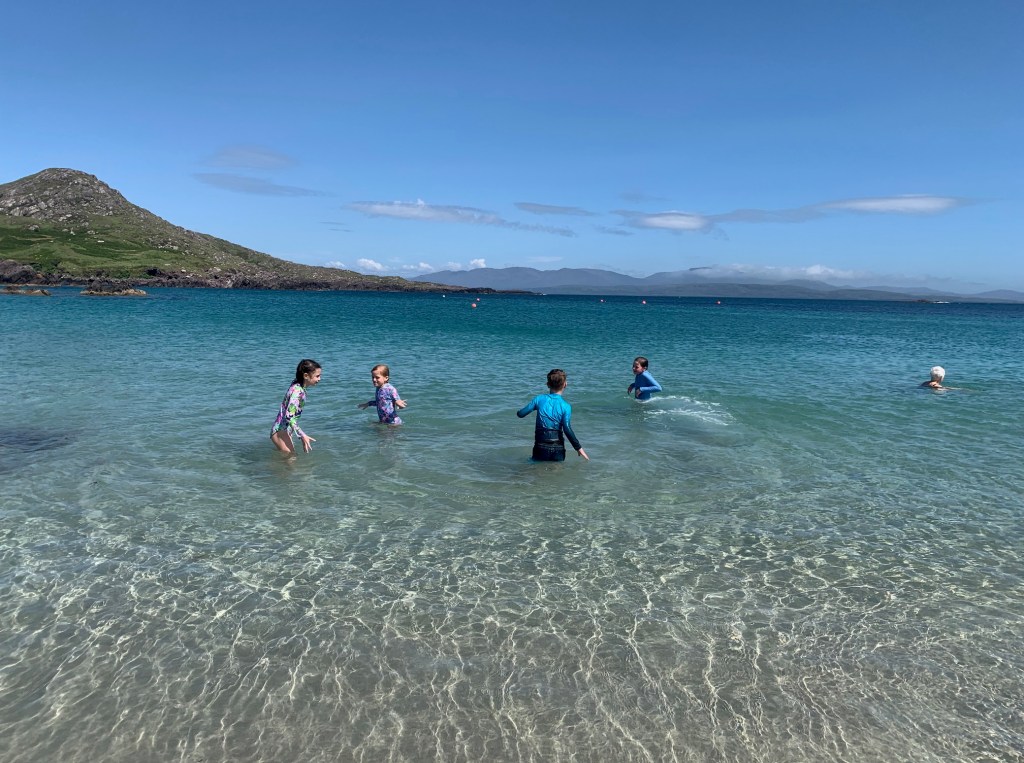 Today we did the Ring of Kerry but we did it with Lilian and Finn! BTW Lilian is one of Roxy’s BFFAEAEAE…. (Best friend forever and ever and ever blah blah) and Finn is her brother. In the Ring of Kerry the first place we stopped at Killarney to have coffee and scones. The next stop was Torc Waterfall and we had lost them! Don’t Worry we found them but it took a 20 minute walk downhill. The next stop was Lady View which is just a view of mountains that look like ladies. After that stop we went to was Castlecove Beach and had a play and some lunch but the water was absolutely FREEZING! To make the water warm we had to pee in the water. For our last stop we went to Kells Bay Beach and jumped off the jetty and the water was also FREEZING! Then we went home and had some dinner then we went to bed. See ya tomorrow for Blarney Castle + more