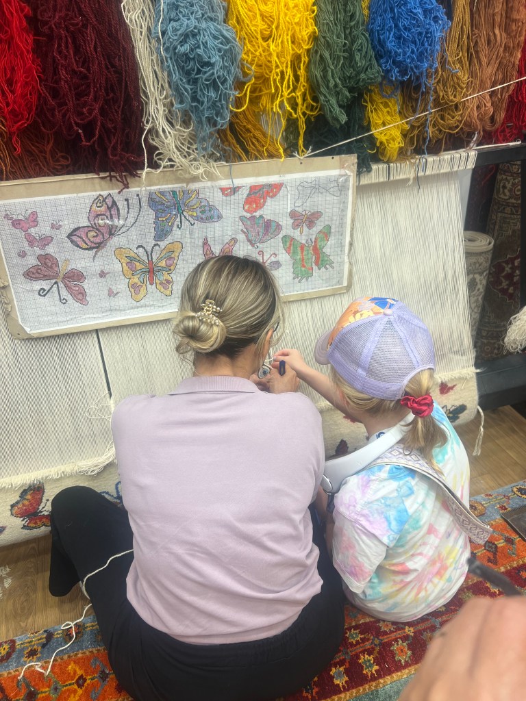 Then it was back to the Port and the obligatory carpet demonstration. Roxy had a go! I also got to try some Raki (no doubt some sore heads acquiring the taste).