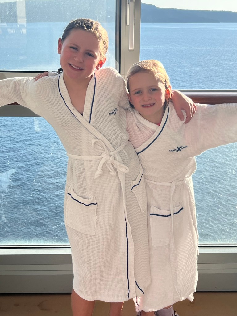 2) The pool – but next time mum and dad should order us a cruise with a better pool! it was not a kids pooooool 😦 Check out the robes though!